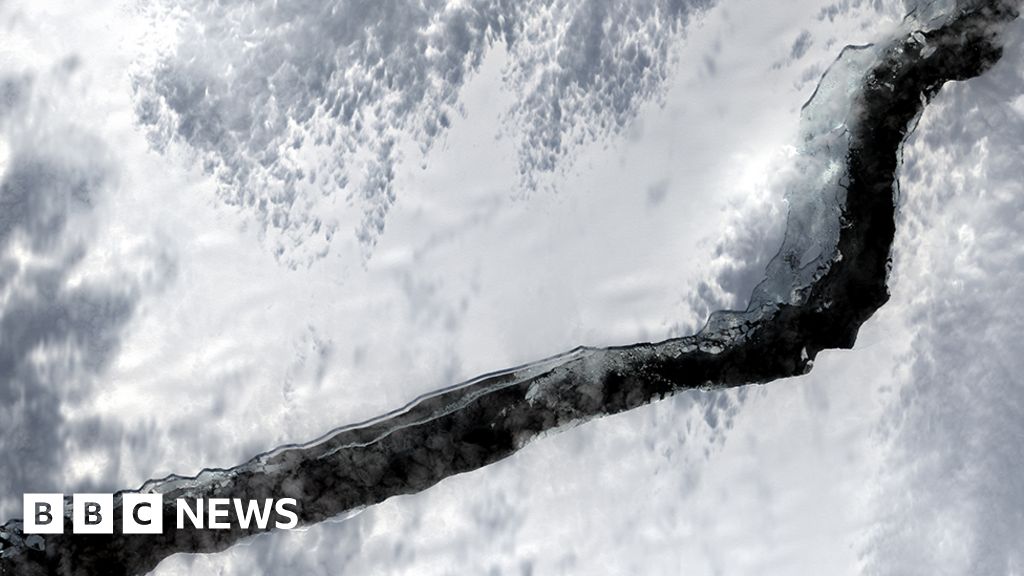 Close-up view of crack that made mega-iceberg